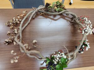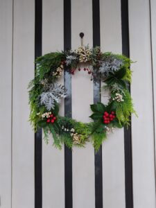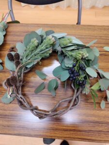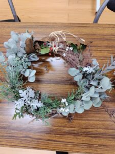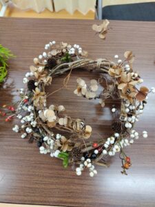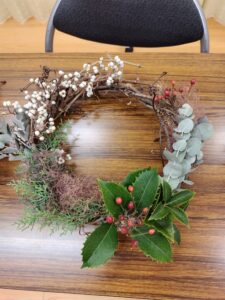 妻と地区のガーデニングクラブのメンバーがクリスマスリースを作りました。