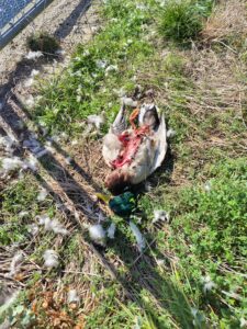 あるいは、別の原因で死んだマガモを食べようとしたタヌキがいた?
